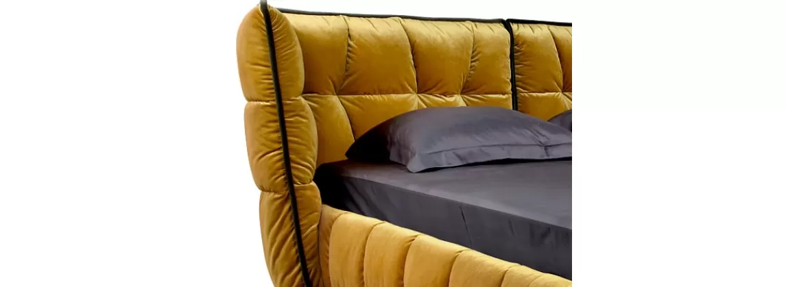 Каркасом изголовья служит фанера, каркас основания – из ДСП с элементами деревянного бруса. Кровать имеет мягкое наполнение из пенополиуретана. Для создания более воздушных форм обивочные чехлы модели содержат слой из холофайбера. Чехол основания кровати закреплен на каркасе текстильными застежками типа «липучка».