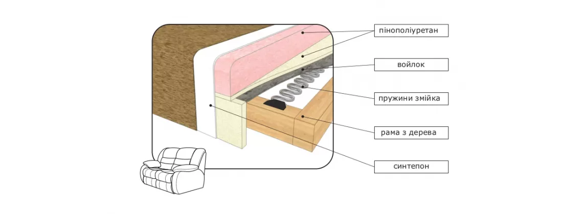 М'які частини сидінь мають комбіноване наповнення з пінополіуретану і синтепону.