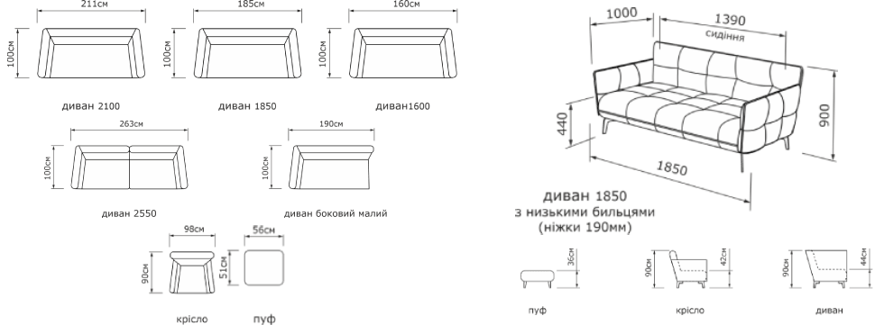 «ФЛОРЕНЦІЯ» - стильний диван в двох типорозмірах і крісло. Особливий крій і наповнення холофайбером роблять диван особливо комфортним.