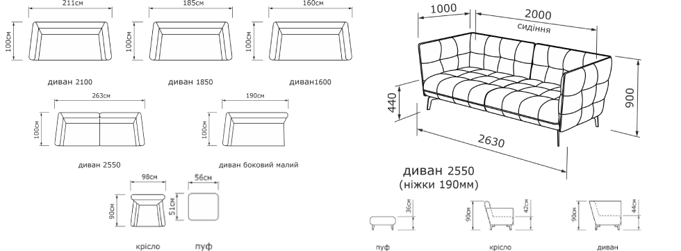«ФЛОРЕНЦІЯ» - стильний диван в двох типорозмірах і крісло. Особливий крій і наповнення холофайбером роблять диван особливо комфортним.