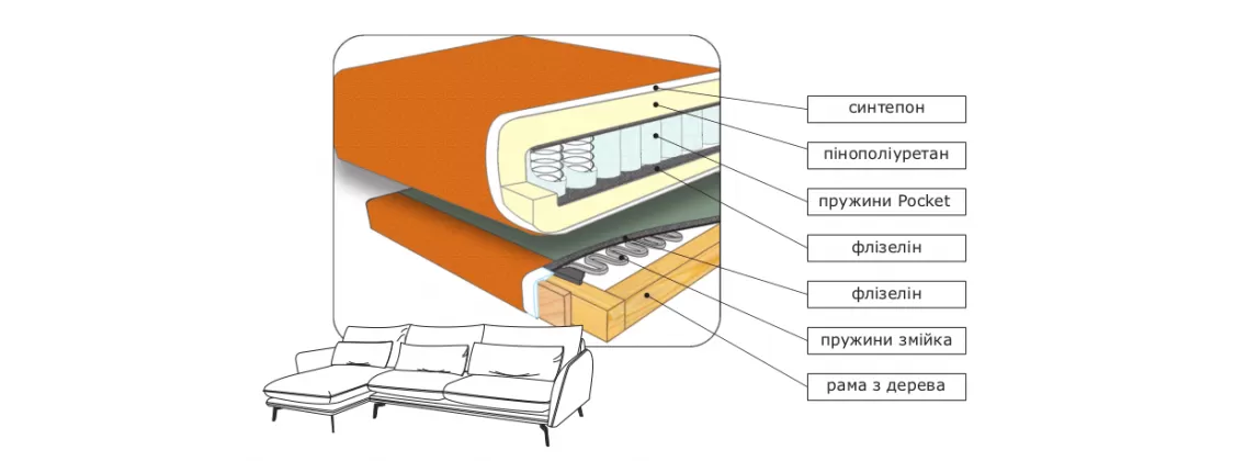 В основі каркасу використовується міцна і довговічна порода дерева - багатошарова березова фанера різної товщини (високого класу, що поставляється в Європу), сосновий брус і ясен.