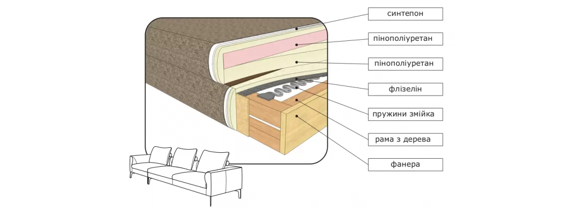 В основі каркасу використовується міцна і довговічна порода дерева - багатошарова березова фанера різної товщини (високого класу, що поставляється в Європу), сосновий брус і ясен.